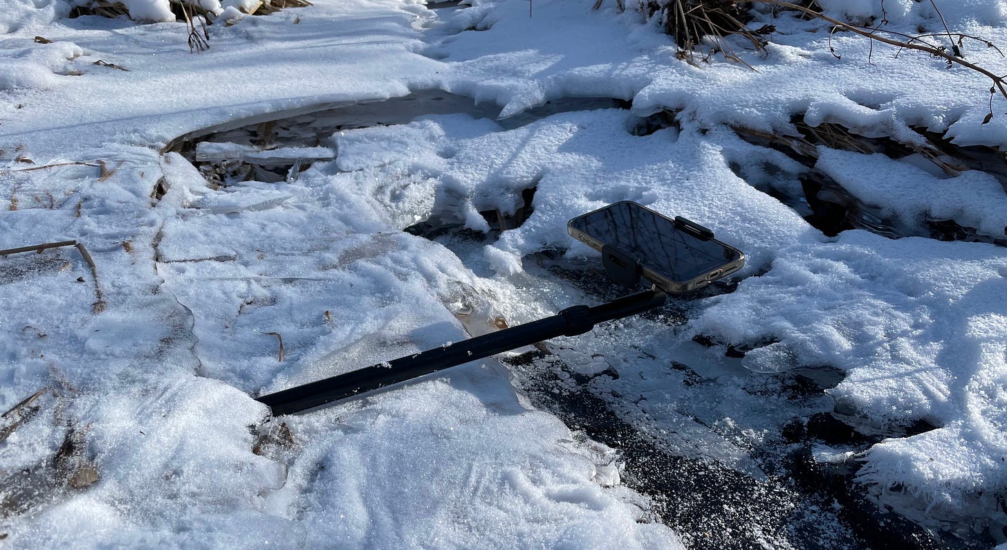 I had to step carefully for I was walking on thin ice, both in the literal and metaphorical flavours. Literally because the ice covering the creek was thin, and I had to be quite intimate with it, standing on it and lying on it. Setting up my tripod was difficult but I found creative solutions, working with the ice formations to substitute for my tripod legs (at one point my phone and tripod totally dunked into the creekâ it was fine). Metaphorically because I hadnât done a land-animation type video before, where I was responding to a whole place and not just a material, and so I wanted to do it justice. (Thank you Helena for trusting me to just wing it).